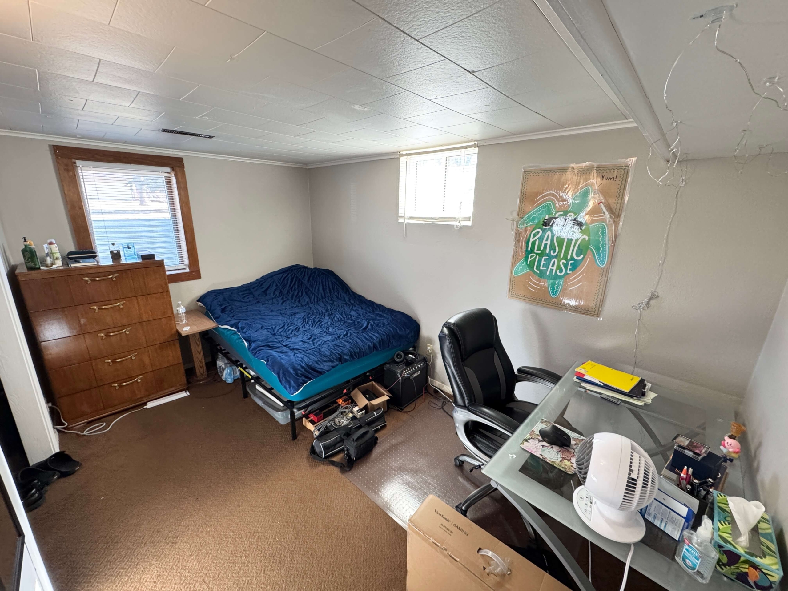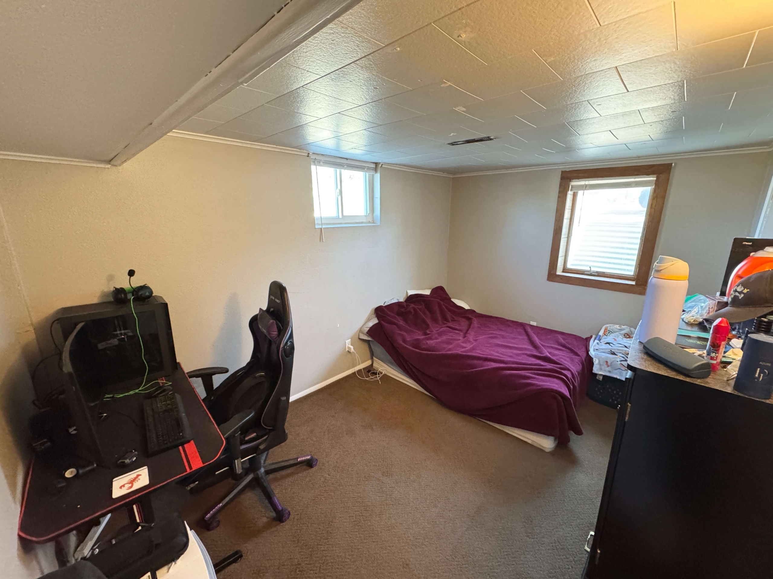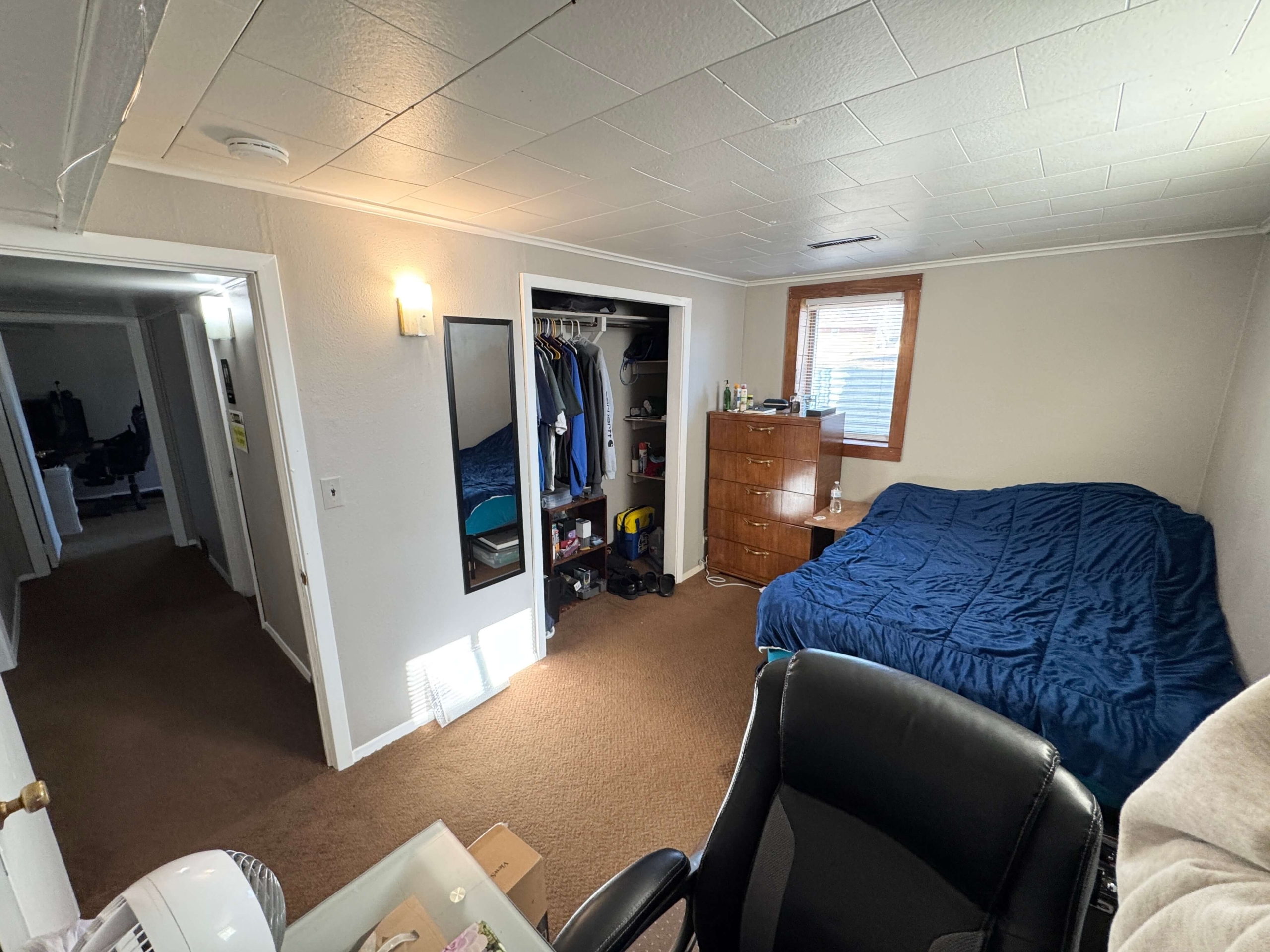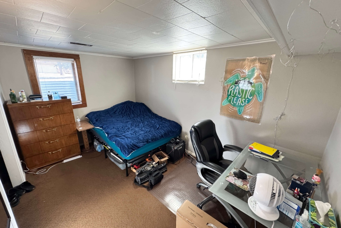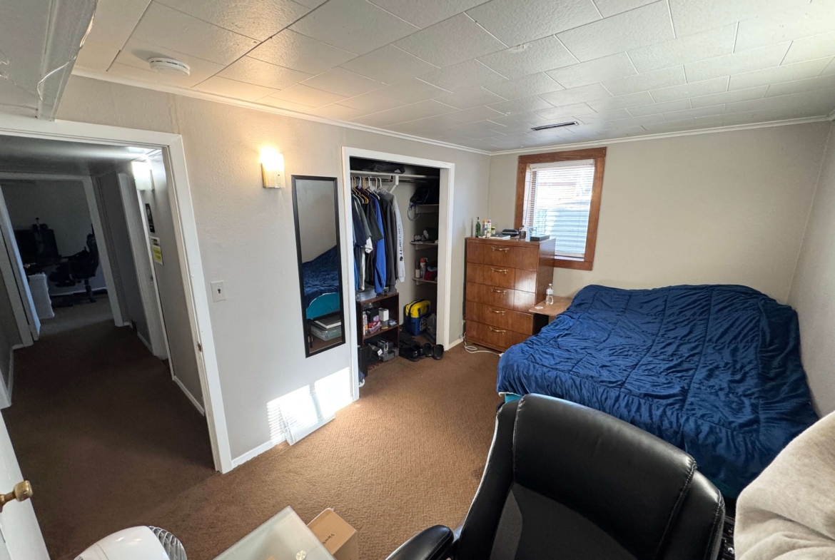 Inside, you’ll find two well-sized bedrooms, a full bathroom, and a comfortable living area. The layout offers separation between living and sleeping areas, creating a balanced and usable floor plan.